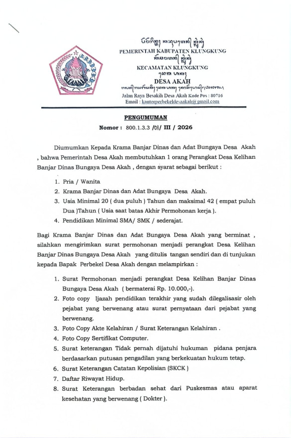 Pj Perbekel desa Akah bersama Bendesa Adat Akah menghadiri Undangan Webinar Dharma Tula yang diselenggarakan oleh Kelompok 7 KKN Desa Akah Universitas Hindu Negeri I Gusti Bagus Sugriwa Denpasar dengan Narasumber Prof. Dr. Drs. I Nengah Duija, M.Si.(Guru Besar Antropologi Budaya). Acara diikuti peserta undangan melalui zoom meeting dari tempat masing masing.